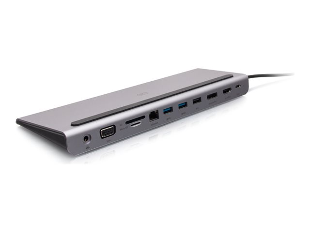 C2G USB-C 10-in-1 Triple Display Docking Station with HDMI, DisplayPort, VGA, Ethernet, USB, SD Card Reader, 3.5mm Audio and Power Delivery up to 100W - 4K 30Hz - Telakointiasema - USB-C - VGA, HDMI, DP - 1GbE