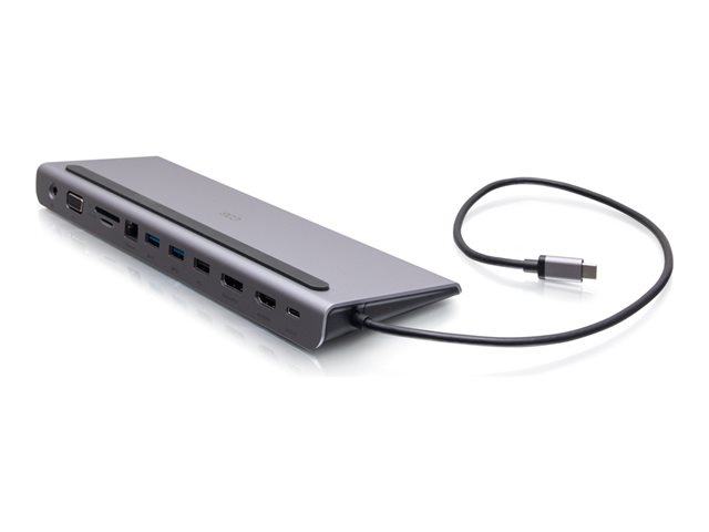 C2G USB-C 10-in-1 Triple Display Docking Station with HDMI, DisplayPort, VGA, Ethernet, USB, SD Card Reader, 3.5mm Audio and Power Delivery up to 100W - 4K 30Hz - Telakointiasema - USB-C - VGA, HDMI, DP - 1GbE