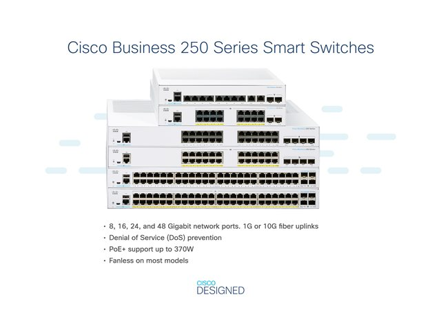 Cisco Business 250 Series CBS250-48P-4X - Kytkin - L3 - smart - 48 x 10/100/1000 (PoE+) + 4 x 10 Gigabit SFP+ - telineeseen asennettava - PoE+ (370 W) CBS250-48P-4X-EU